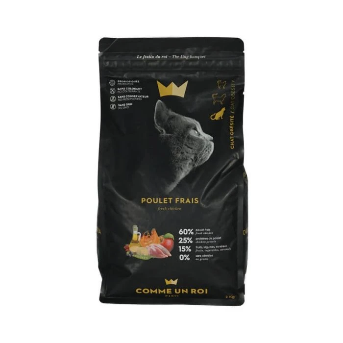 Le crocchette per gatto adulto Obesity senza cereali al pollo di Comme Un Roi è il pasto perfetto per il tuo gatto. Questo alimento completo, sano ed equilibrato sarà molto apprezzato dal tuo felino grazie al suo buon sapore di carne fresca.