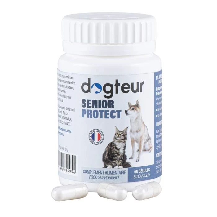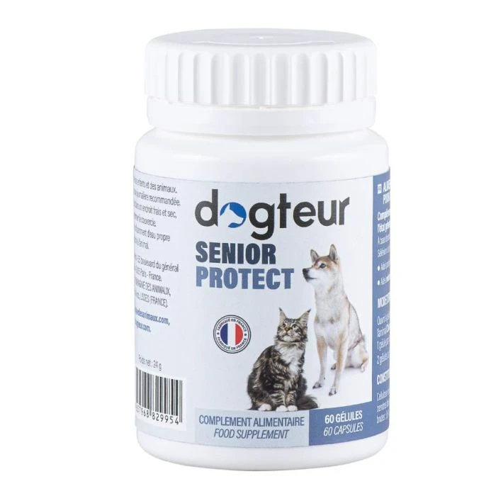 Il tuo animale sta invecchiando ? Niente panico, abbiamo trovato un integratore alimentare che fa la differenza ! Dogteur Senior Protect è il risultato di 20 anni di ricerca in diversi campi: dermatologico, dell’invecchiamento cellulare e degli effetti dello stress.