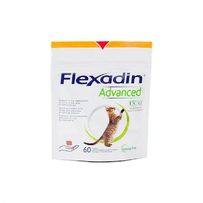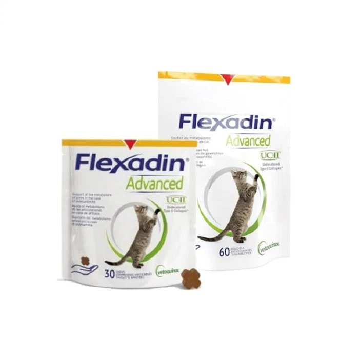 Flexadin Advanced è un integratore alimentare per il sostegno delle articolazioni del gatto, consigliato per i gatti anziani o con problemi di artrosi, al fine di preservare e sostenere le loro articolazioni. Questo integratore a base di UC-II ® (collagene di tipo II non denaturato) sostiene il metabolismo articolare in caso di osteoartrite.
